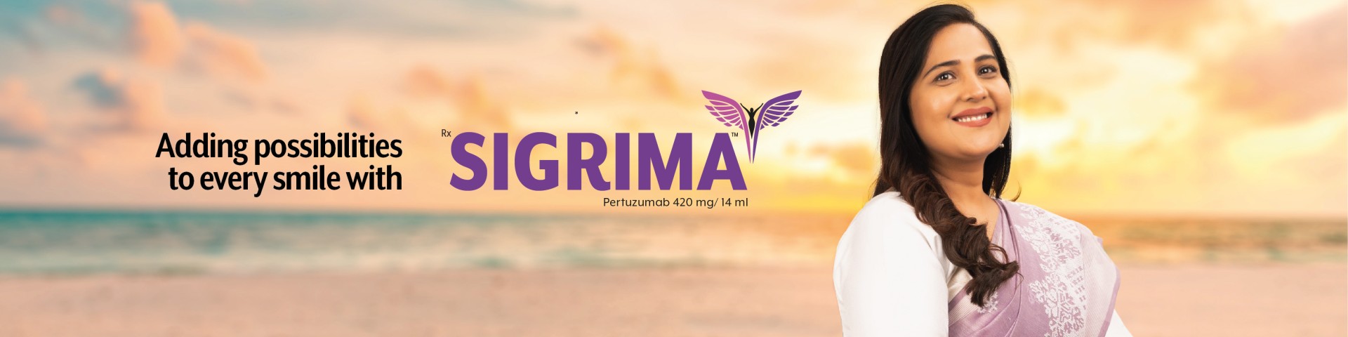 SIGRIMA™ (Pertuzumab) is a medicine prescribed by healthcare professionals and has been approved for treatment of people who have HER2+ metastatic breast cancer (that has spread to other parts of the body)10 and also who have not received anti-HER2 therapy or chemotherapy for metastatic breast cancer, in combination with Trastuzumab and docetaxel.4